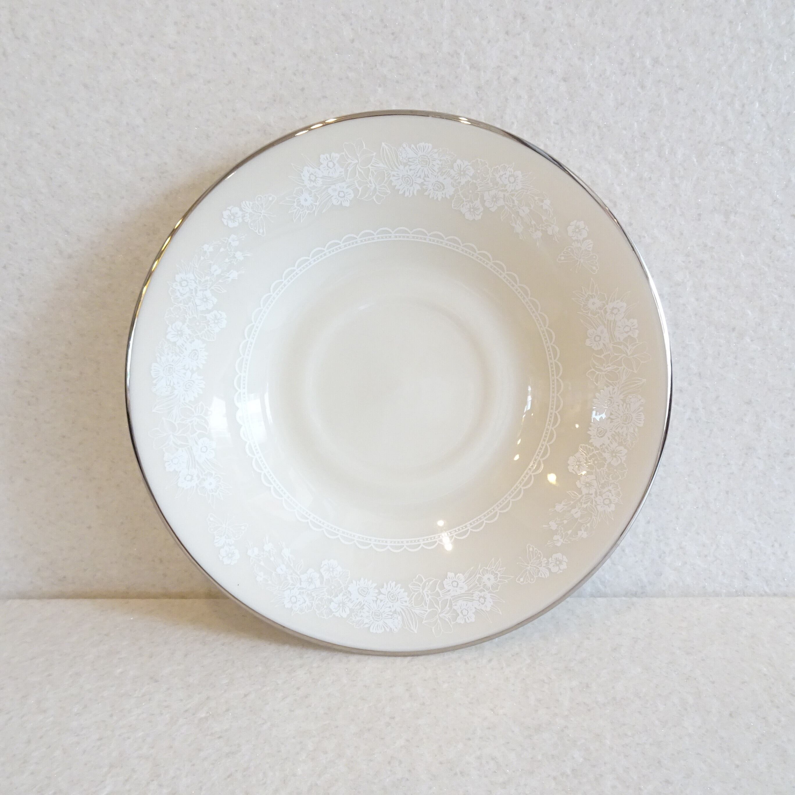 通常であれば、白っぽい陶磁器のうえに白い絵柄をプリントすることはあまりないと思うのですが、LENOX特有の象牙のような乳白色の生地のうえにプリントされると白い花柄が浮立つのも、LENOXならではだと思います。