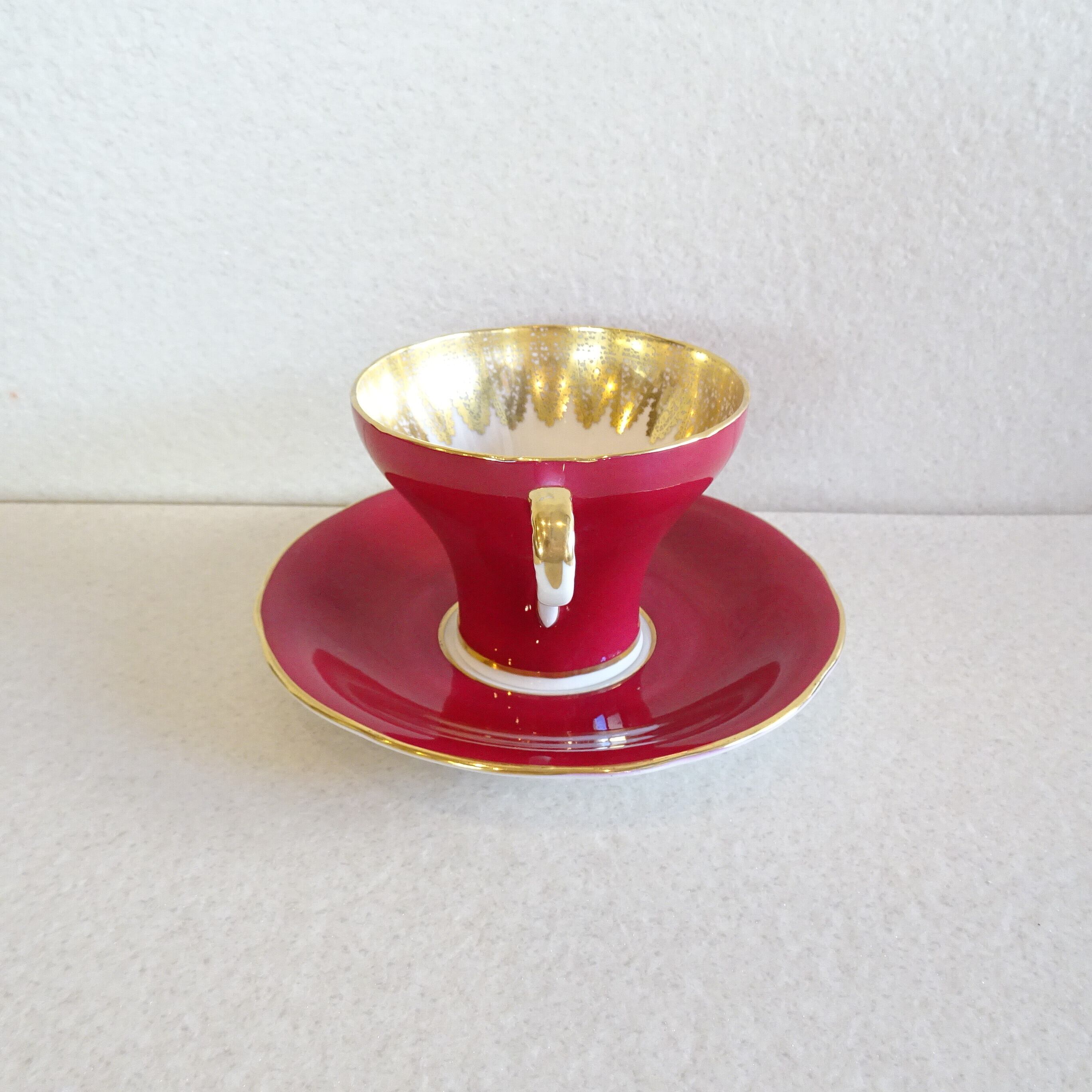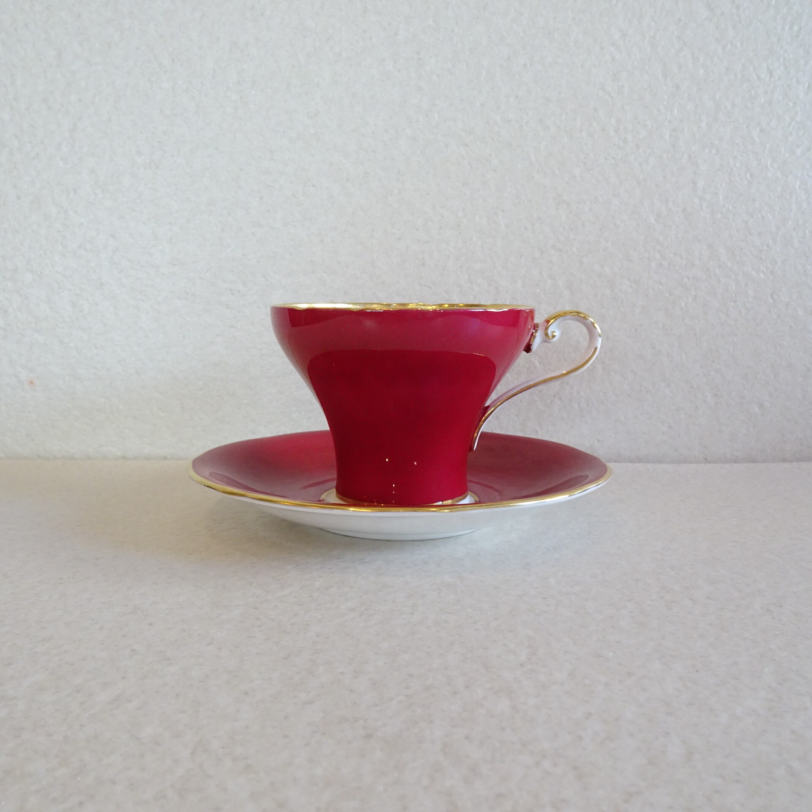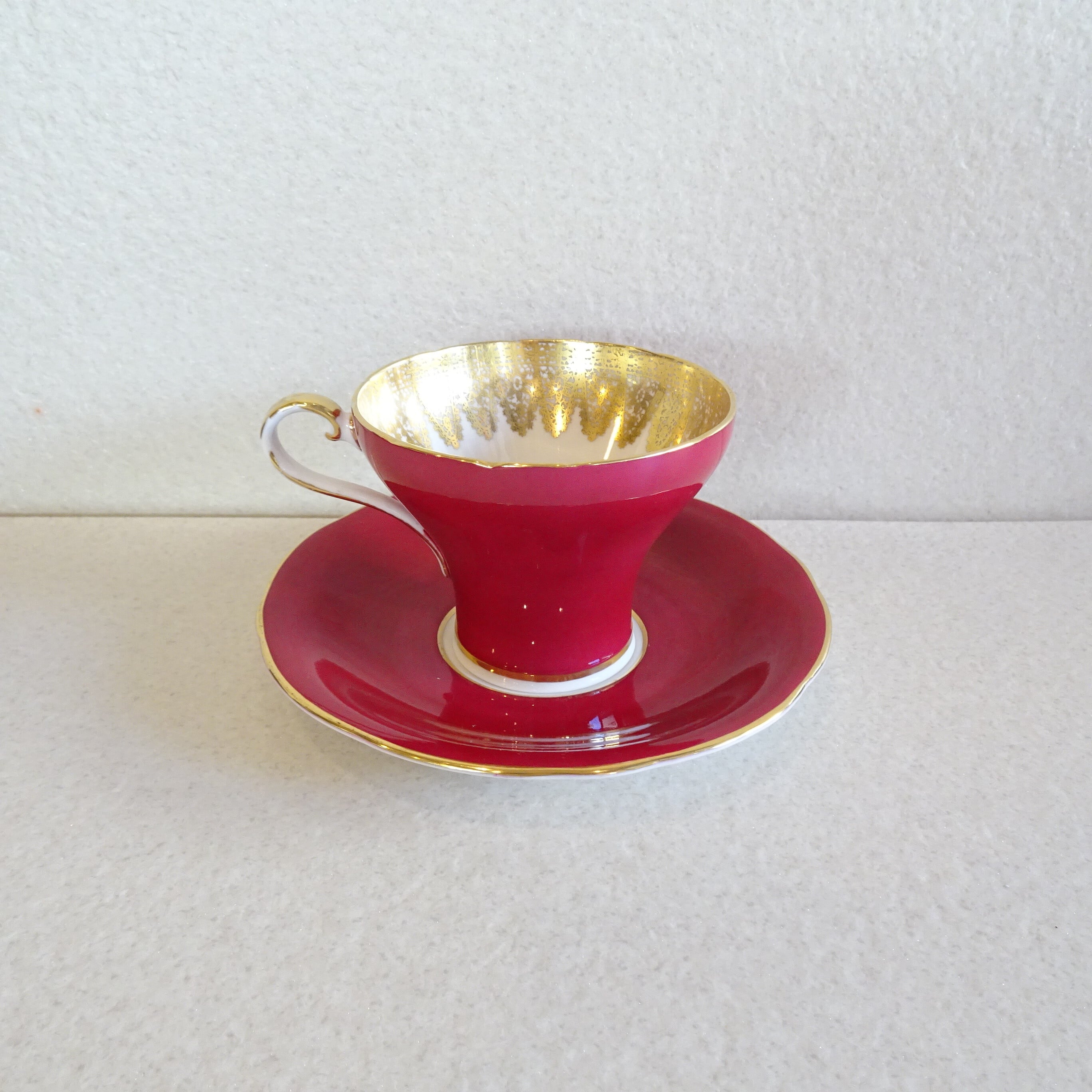 【アンティーク】英国・エインズレイ マゼンタの金レースのカップ&ソーサー