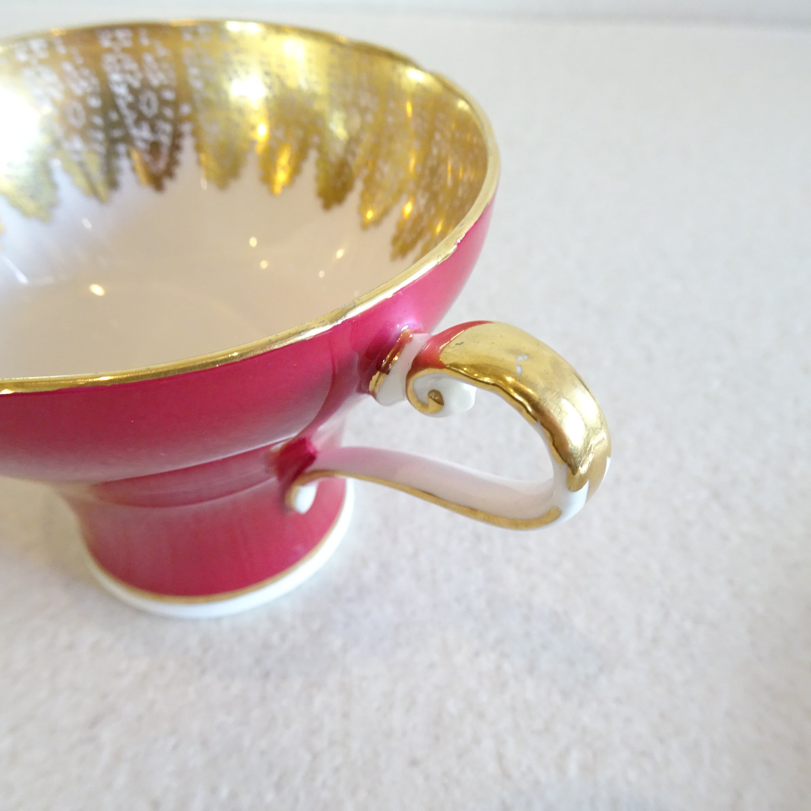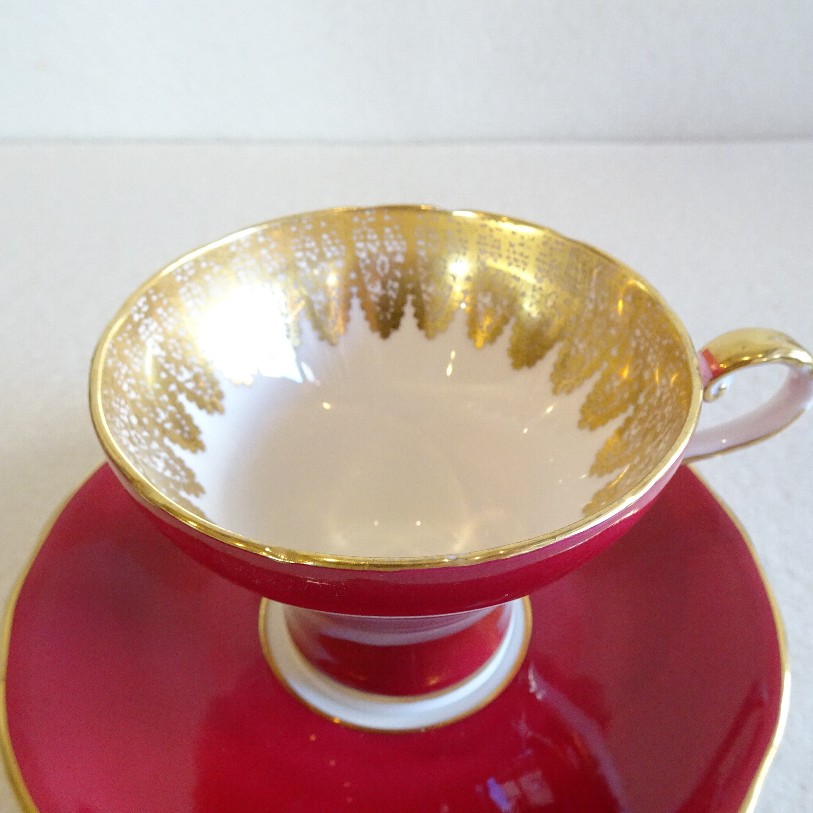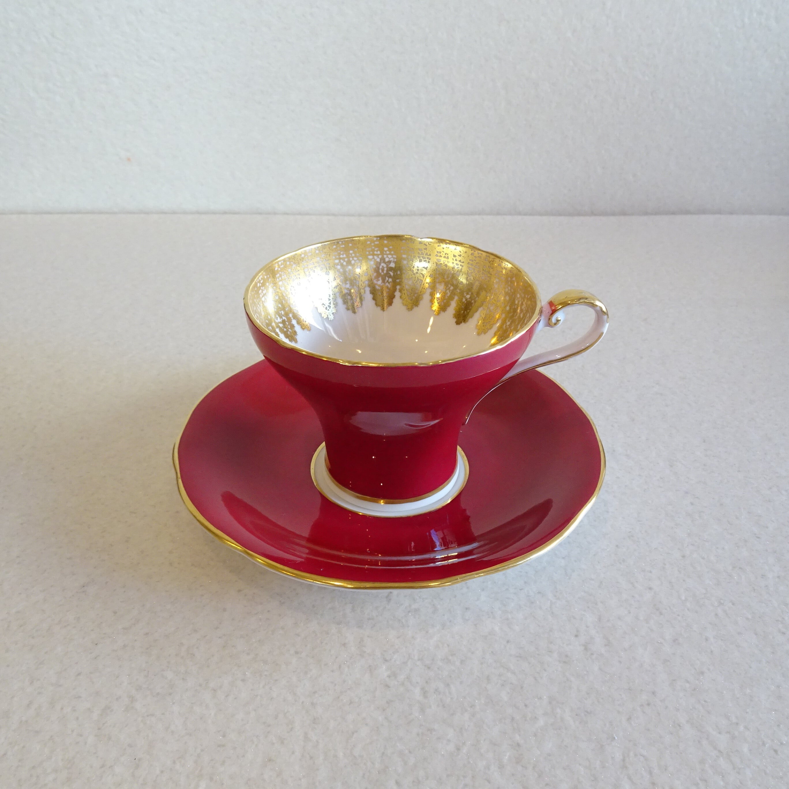 【アンティーク】英国・エインズレイ マゼンタの金レースのカップ&ソーサー