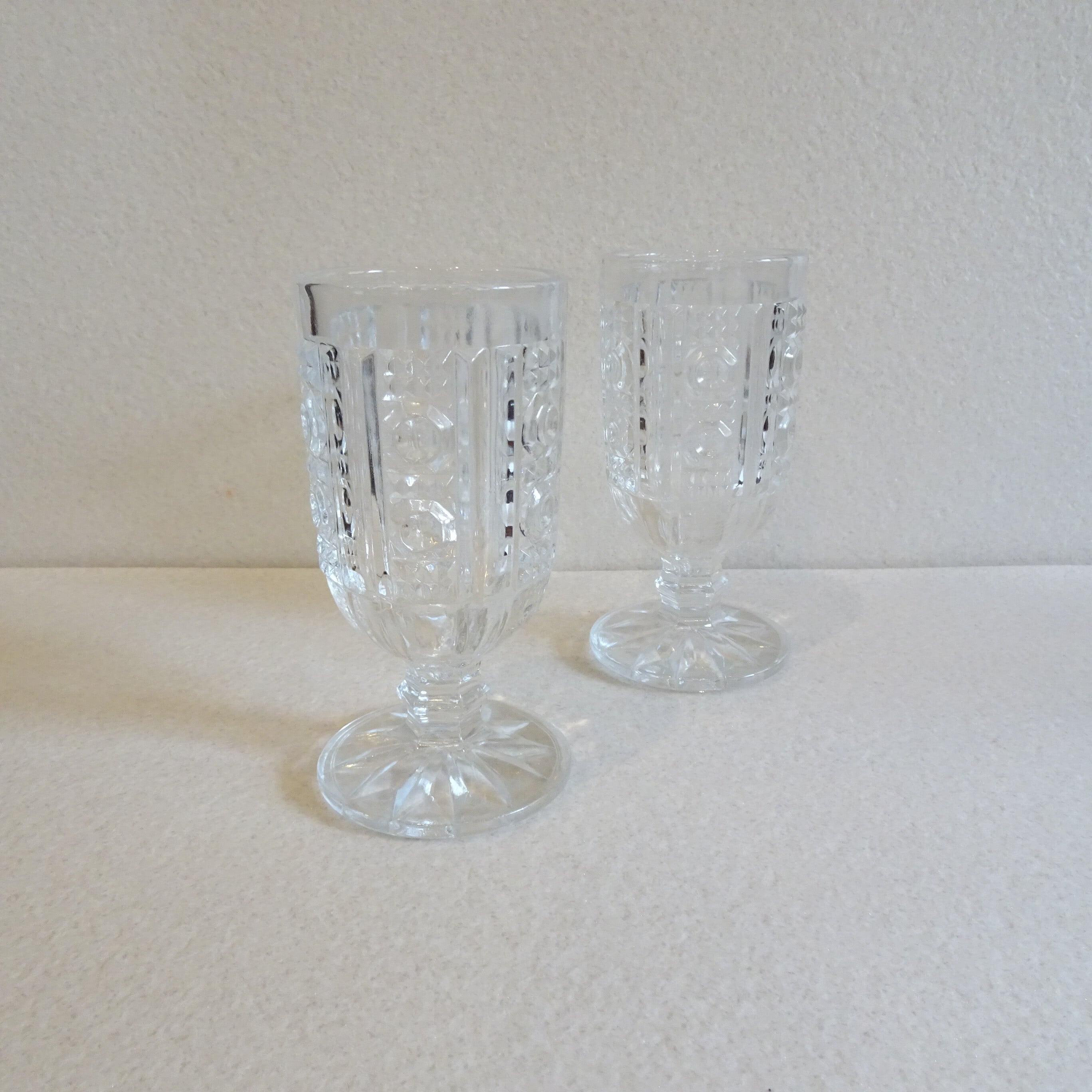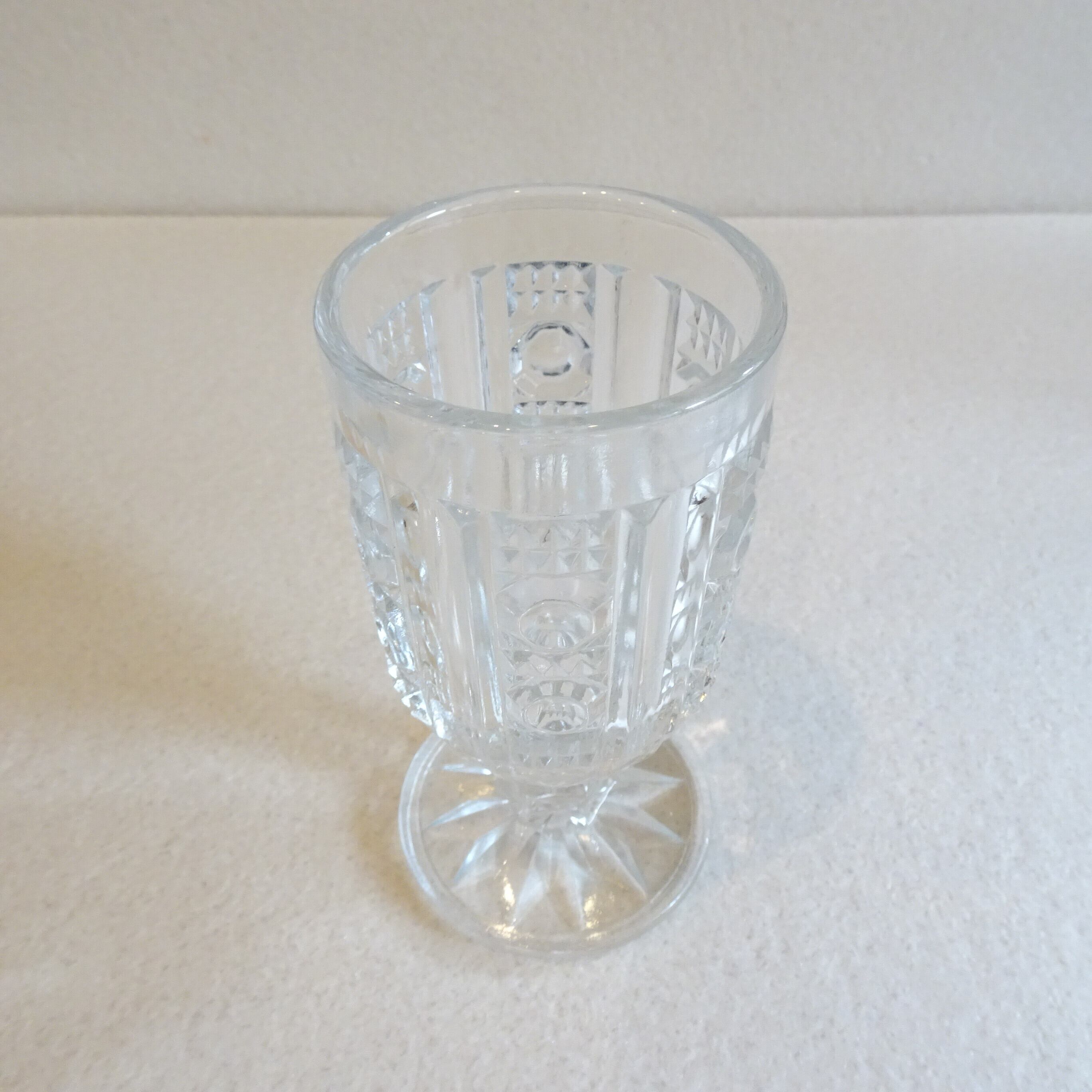 レトロなプレスガラス 脚付きグラス 2個セット
