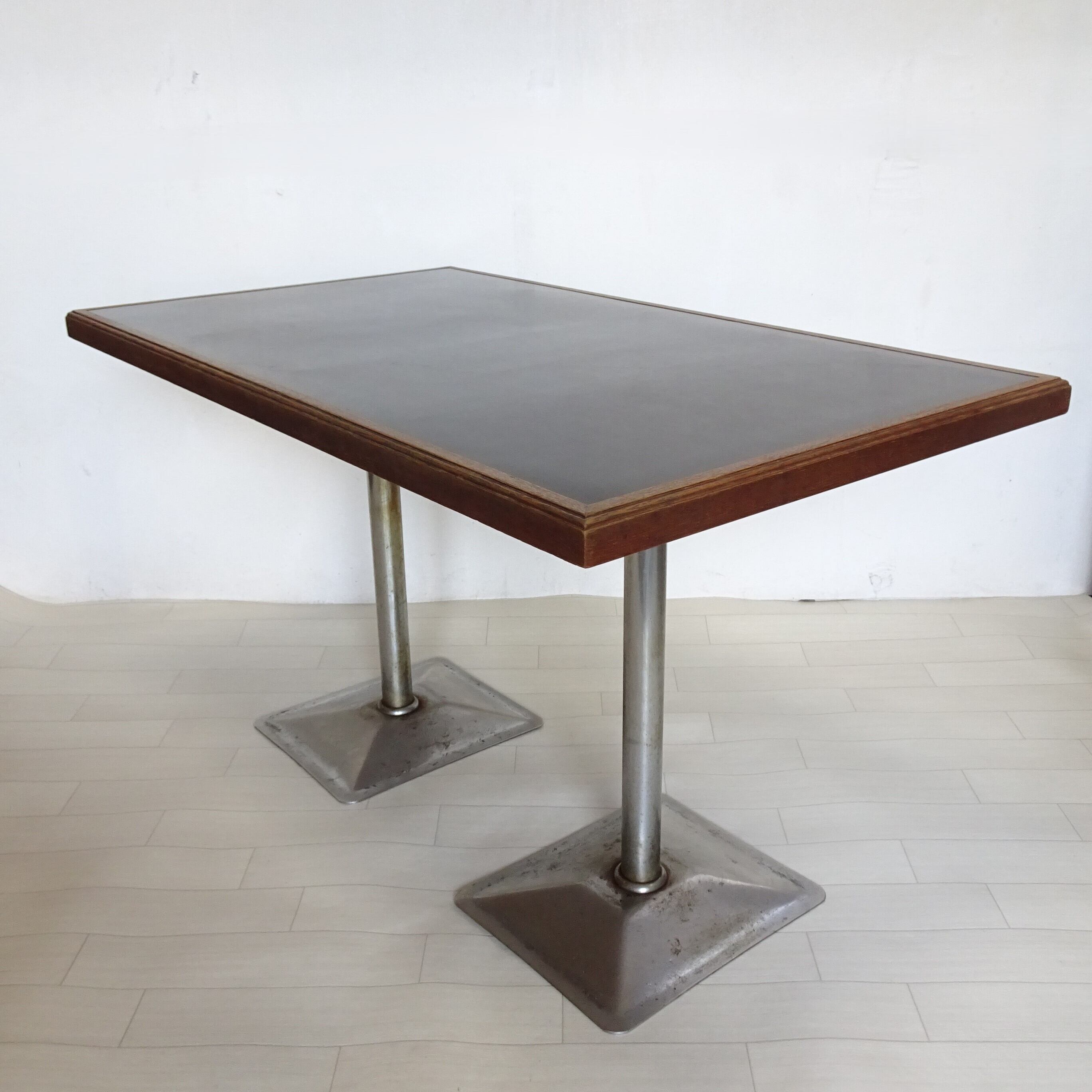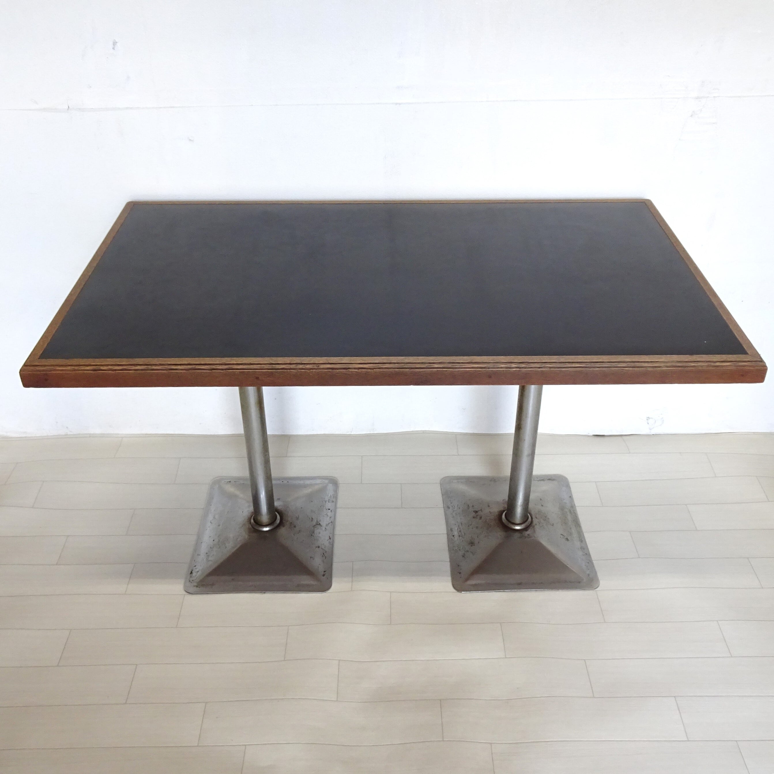 この大きさのテーブル、二本脚、黒い天板、どれもあまり入荷することのない珍しいタイプです。