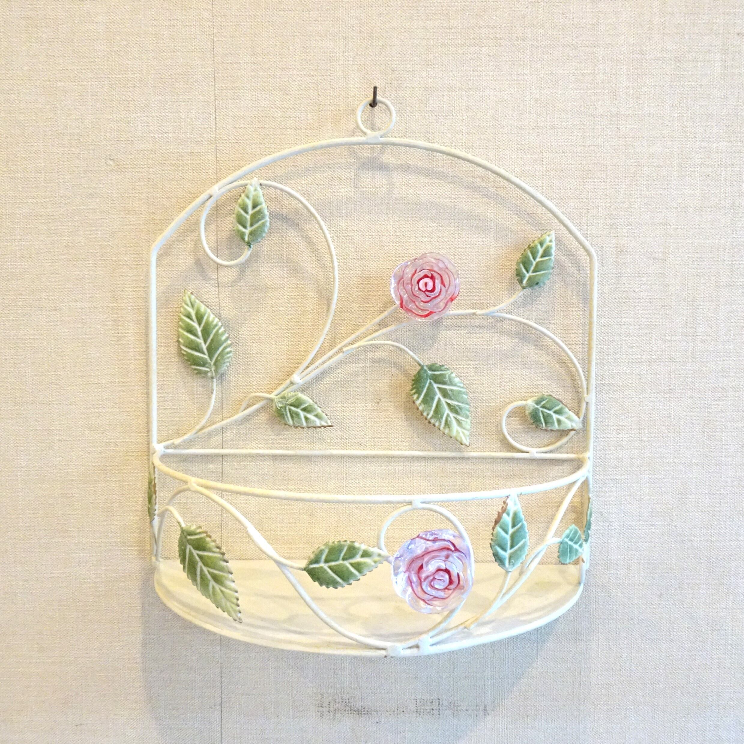 バラの花があしらわれた、壁に掛けられるラックです。